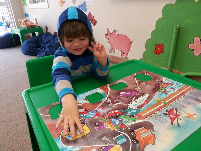 Child playing with sound puzzle at Happy Bears