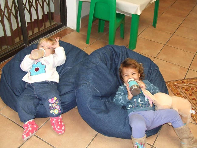 children taking a break on bean bags